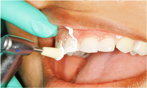The use of a rubber cup and paste will gently buff the tooth surface to remove any “removable” or extrinsic stains.